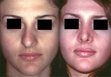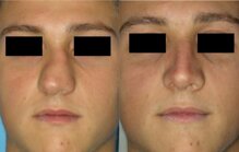 Sulle foto preoperatorie, una in primo piano e due di profilo, viene effettuata una simulazione al computer mediante programma di fotoritocco in modo da dare al paziente un’idea indicativa del possibile risultato post-operatorio.